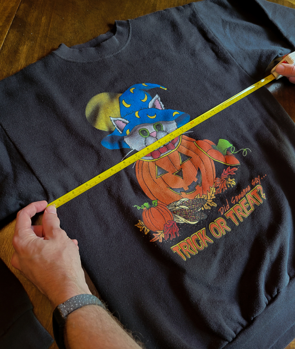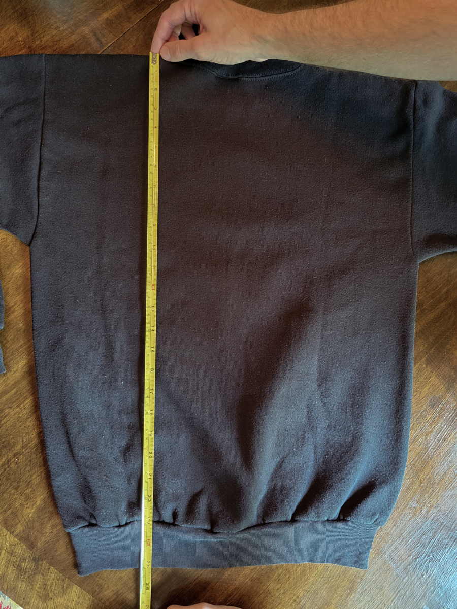 Length is measured on the back of the garment. Usually measured in the center of the shirt, from the neck to the hem, but sometimes from the top of the shoulder to the bottom hem.
