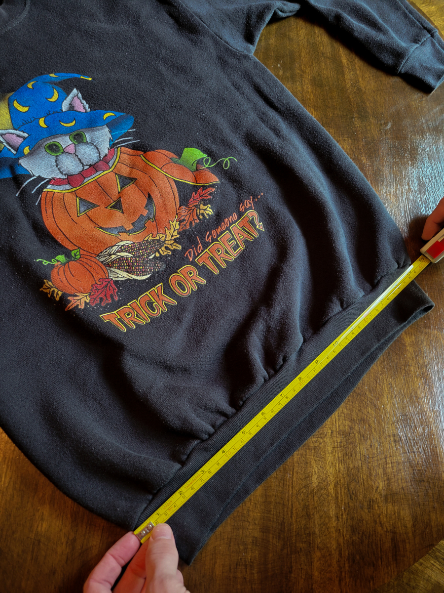 For sweatshirts and sweaters, this will be going across the ribbed knit waistband at the hem. Place it across the top seam, where the band is sewn into the fabric.